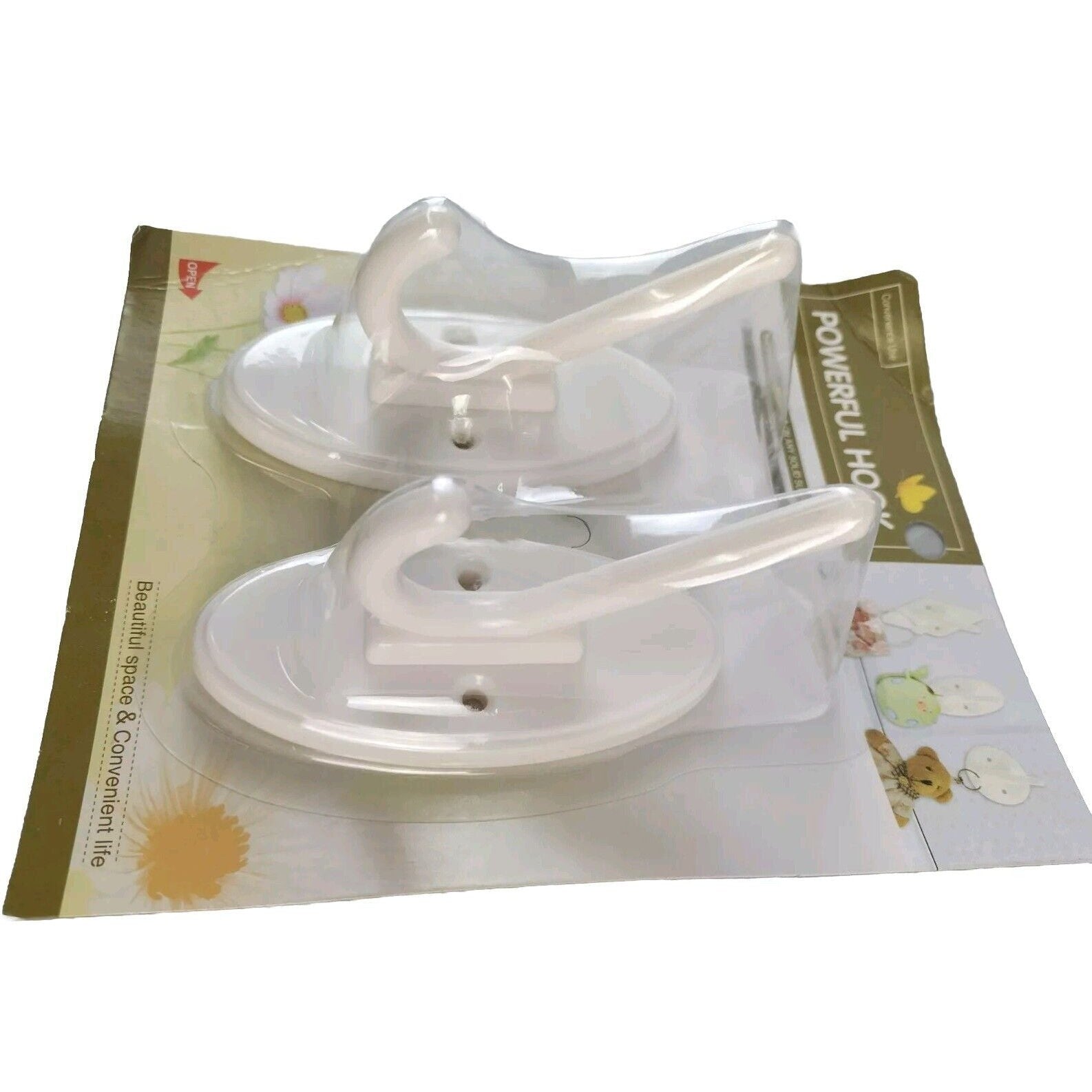 2 PCs Hooks White Plastic Strong Sticky Stick On Wall Door Hang Screw Fix