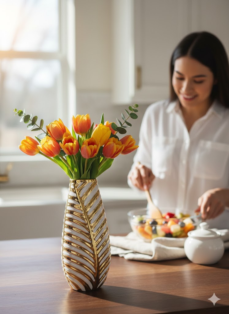 Elevate your interior with this striking ceramic vase, finished in lustrous gold plating that catches the light beautifully. Crafted from premium ceramic, it combines timeless elegance with contemporary sophistication. The gold-plated surface adds a touch of luxury to any room—whether displayed on a mantelpiece, console table, or as a standalone statement piece. Perfect for fresh or dried florals, or simply as sculptural décor. A versatile accent that brings warmth and refinement to modern and traditional spaces alike.